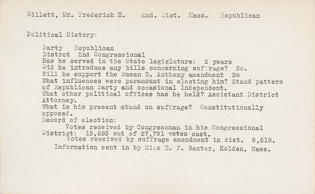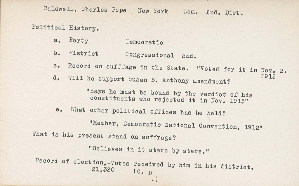 On March 2, 1919, the New York Times revealed details of the sophisticated system used by the women. The index system is “so extensive in detail, political and personal,” said the Times, “that twenty-two different cards are required for each Senator and Representative. Among them — cards on health and habits, on political life prior to Congress, on the margin of re-election at the last campaign. “No detail is overlooked that might give a lobbyist an insight into how best to approach the Congressman in question.”